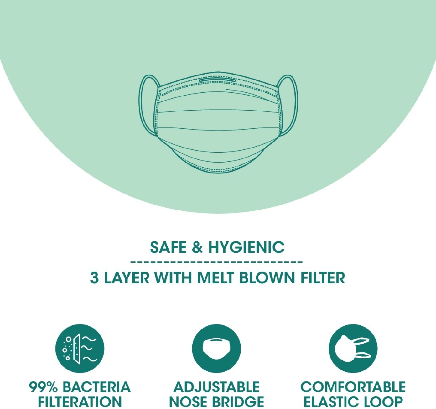 | Model Name | Dispo Mask 3 Ply Mask With Elastic Ear Loops, 50 pcs, (Pack of 1) |